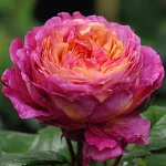 Krásná pivoňková růže, která zpočátku kvete v jemných růžových barvách, pak se uprostřed objeví duhové růžovo-fialové odstíny. Má jemné ovocné aroma.