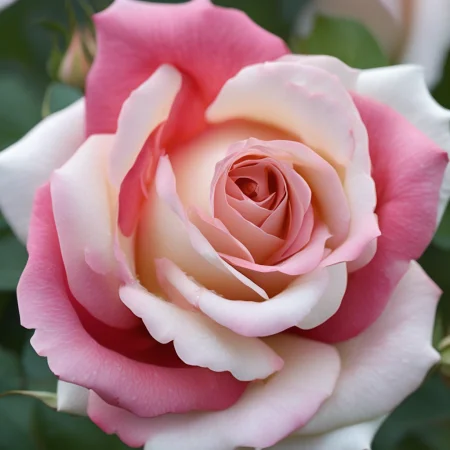 Krásný a elegantní vzhled růže, známý svými jemnými květy a odolností. Má velké květy v různých odstínech růžové, často s lehkými nádechy bílé. Růže se vyznačuje pevnou strukturou a dlouhotrvajícími květy, což ji činí ideální pro zahradní kompozice a kytice. Je oblíbená mezi milovníky květin pro svou krásu a snadnou údržbu.