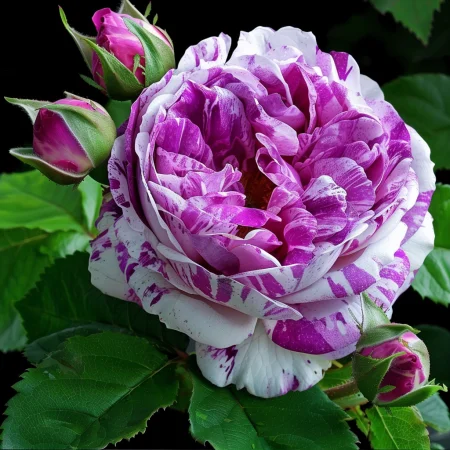 Odrůda (bourbonská růže) s mimořádně krásnými chocholovitými květy v růžovo-fialové barvě s bílými pruhy a mramorovými vzory. Květy jsou voňavé, velké a mnohovrstevné. Keř dorůstá do výšky asi 1,2–1,5 m, má vzpřímený a dobře olistěný růst. Kvete bohatě během léta, preferuje slunné místo a úrodnou, dobře propustnou půdu. Vhodná pro klasické zahrady a jako výrazná rostlina.