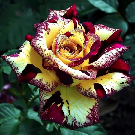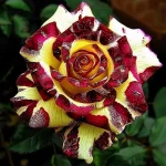 Neobvyklý druh čajohybridní růže, vyznačující se unikátními pestře zbarvenými květy – tmavě červené okvětní lístky se žlutými nebo krémovými pruhy a skvrnami. Květy jsou velké, s intenzivní vůní, keř dorůstá do výšky 80–100 cm. Vhodná jak do zahradních výsadeb, tak i jako řezaná květina, přitahuje pozornost svým exotickým a „magickým“ vzhledem.