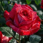 Elegantní odrůda hybridní čajové růže, vyznačující se velkými sametovými květy v sytě červené barvě s unikátními tmavě červenými pruhy a vzory. Květy jsou dlouhotrvající, klasického tvaru a s jemnou vůní, což je činí velmi žádanými pro kytice a aranžmá. Keř má zdravý růst a dlouhé stonky, vhodný jak pro zahradní pěstování, tak pro řezané květy.