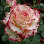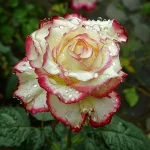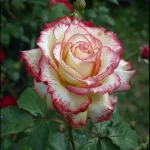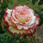 Floribunda růže s dvoubarevnými květy: krémově bílá s červenými okraji. Střední, plné květy (9–10 cm), mírná vůně. Výška cca 70–80 cm, kvete od června do října, odolná vůči chorobám, vhodná na slunné zahrady a záhony.