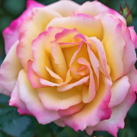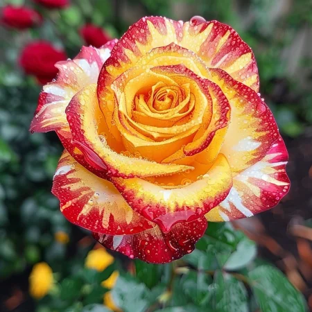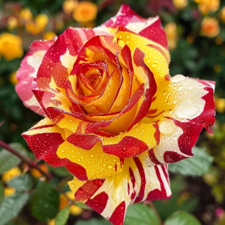 Krásná odrůda růže, charakteristická unikátními, vícebarevnými květy připomínajícími duhu. Květy jsou jasné a přecházejí mezi odstíny růžové, žluté a oranžové, což ji činí ideální pro okrasné zahrady a kytice. Listy jsou tmavě zelené a lesklé, růst je zdravý a kompaktní, vhodný pro keře nebo obruby. Růže má příjemnou, jemnou vůni a bohatě kvete během sezóny.