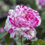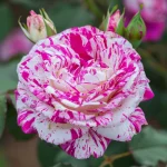 Dekorativní odrůda s mimořádně atraktivními dvoubarevnými květy — bílé okvětní lístky s červenými nebo růžovými žilkami. Květy jsou středně velké až velké, často poloplné, s příjemnou vůní. Rostlina je kompaktní, s tmavě zeleným, lesklým listovím, vhodná do zahrad, záhonů a váz. Odrůda je známá svou odolností a dlouhým obdobím kvetení.