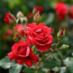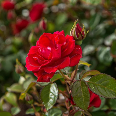 Efektní mini růže s jasně červenými květy a svěžím, živým vzhledem. Vhodná pro květinové kompozice, záhony a nádoby, kde hledáte výrazný a poutavý akcent.